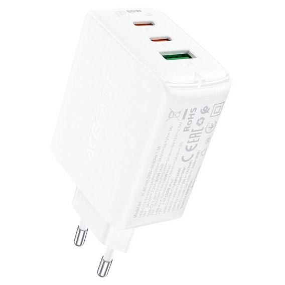 Acefast szybka ładowarka sieciowa GaN (2x USB-C / USB-A) PPS / PD / QC4+ 65W biała (A41)