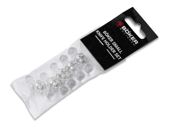 Zestaw składający się z 10 uchwytów na noże do dekoracyjnej prezentacji kolekcji noży w domowej gablocie. Dyskretne uchwyty wykonane są z przezroczystego akrylu i dzięki swoim kompaktowym wymiarom zapewniają schludne ustawienie każdego noża. Głowicę magnetyczną ze słynnym na całym świecie drzewem Bokera można dowolnie ustawić na ostrzu i zamienia każdą kolekcję noży w indywidualny salon wystawowy.