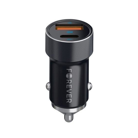 Forever ładowarka samochodowa PD QC CC-06 1x USB-C 1x USB 20W czarna + kabel USB-C - USB-C 60W