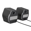 Wysokiej klasy głośniki w prosty sposób połączyły praktyczny, a zarazem pomysłowy design. Nowoczesne akcesorium zwraca uwagę unikalnym wzornictwem, a kolorowe podświetlenie RGB nadaje im interesujący, gamingowy charakter. Stwórz swój własny, gamingowy klimat, wybierając spośród 12 dostępnych efektów świetlnych. Dostosuj oświetlenie do swoich upodobań i zadbaj o niepowtarzalną atmosferę w strefie gracza.