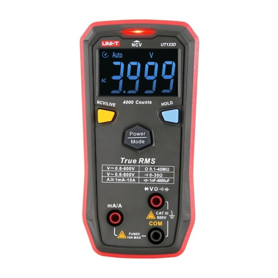 Inteligentny multimetr cyfrowy UNI-T UT123D to niezawodne narzędzie do codziennych pomiarów w domu, podczas prac DIY, czy w trudnych warunkach oświetleniowych. Urządzenie automatycznie rozpoznaje napięcie AC/DC, rezystancję, diody i ciągłość obwodu, a za pomocą jednego przycisku umożliwia ręczny wybór trybu, w tym pomiaru pojemności. Kompaktowa konstrukcja i czytelny wyświetlacz EBTN zapewniają wygodę obsługi w każdych warunkach, a certyfikaty CE oraz UKCA gwarantują bezpieczeństwo i wysoką jakość pracy. To gadżet, który sprosta każdym zadaniom!