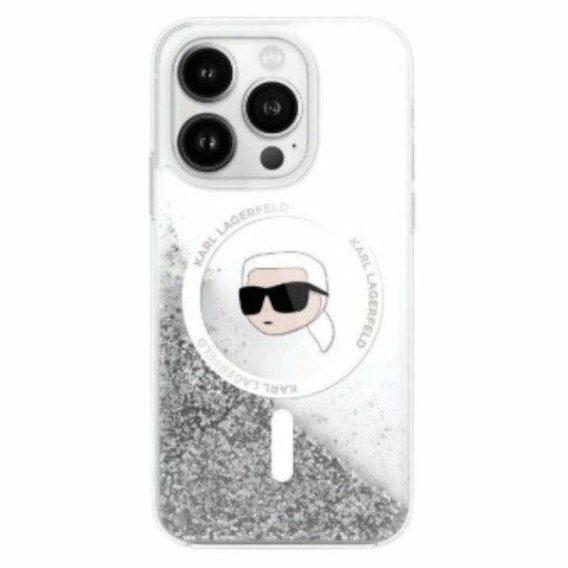 Karl Lagerfeld nakładka do iPhone 16 Pro 6,3" KLHMP16LLGKISGH przezroczysta Hardcase Liquid Glitter Karl Head MagSafe