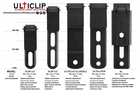 Opatentowany Ulticlip mocuje pochwy, kabury i inne pokrowce do spodni czy kieszeni. Genialnie prosta, stalowa konstrukcja pozwala na łątwe dopasowanie i zapewnia maksimum niezawodności i wytrzymałości.