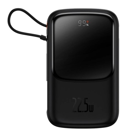 Powerbank Baseus Qpow Pro z kablem USB-C, USB-C, USB, 10000mAh, 22.5W (czarny)