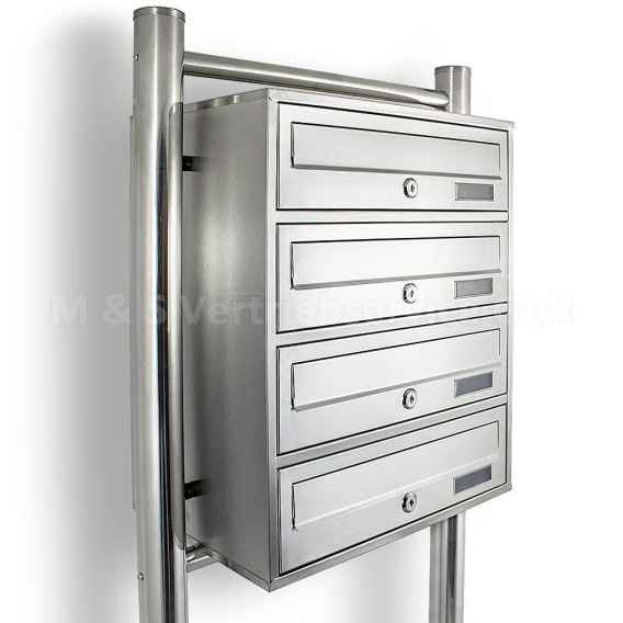 Ze względu na zwartą konstrukcję, system letterbox 4 skrzynek zajmuje niewiele miejsca. Montaż jest w ten sposób łatwy i szybki. Zakres dostawy obejmuje materiały montażowe do betonowych fundamentów.