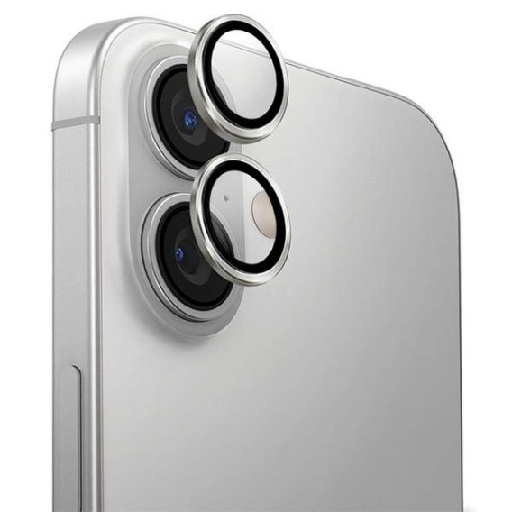 Szkło na aparat UNIQ Optix Aluminium Camera Lens Protector z aplikatorem na iPhone 16 / iPhone 16 Plus - srebrne